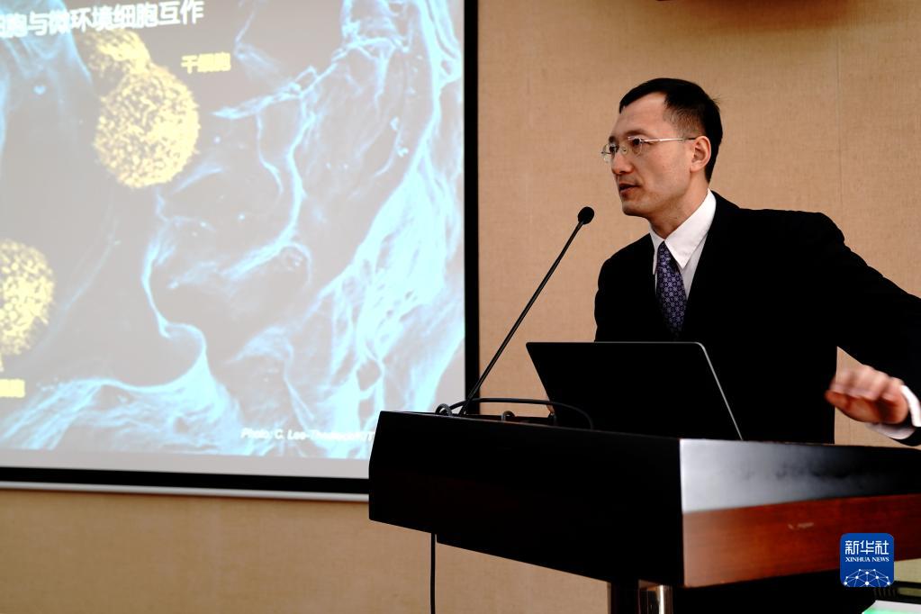 12月2日,中国科学院分子细胞科学卓越创新中心研究员周斌在发布会上介绍研究成果。新华社记者 张建松 摄