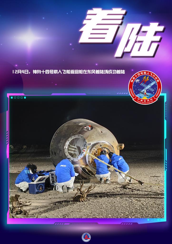 新华社酒泉12月4日电(记者黄明、李国利、张汨汨)12月4日20时09分,神舟十四号载人飞船返回舱在东风着陆场成功着陆,现场医监医保人员确认航天员陈冬、刘洋、蔡旭哲身体状态良好,神舟十四号载人飞行任务取得圆满成功。