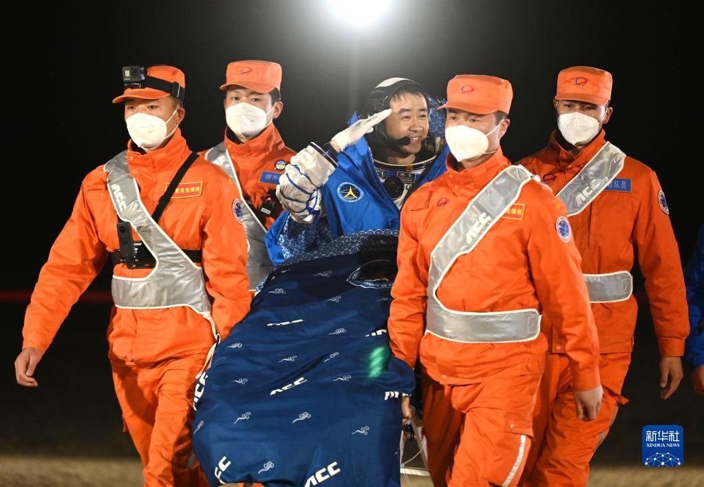 据中国载人航天工程办公室介绍,19时20分,北京航天飞行控制中心通过地面测控站发出返回指令,神舟十四号载人飞船轨道舱与返回舱成功分离。此后,飞船返回制动发动机点火,返回舱与推进舱分离。返回舱成功着陆后,担负搜救回收任务的搜救分队及时发现目标并抵达着陆现场。返回舱舱门打开后,医监医保人员确认航天员身体健康。
