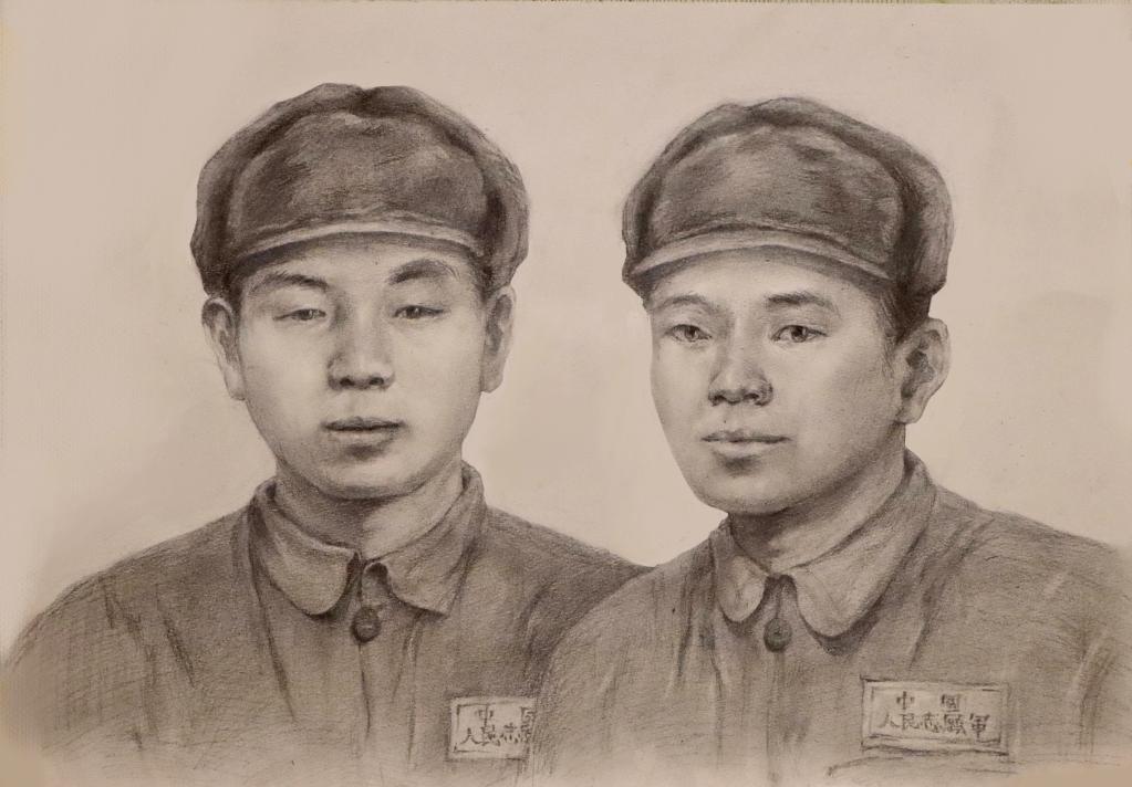 “00后”孙小可就读于安徽师范大学视觉传达与设计专业,今年初,来自安徽宿州的九旬老兵卢致俭委托孙小可,画一张自己和弟弟卢剑的合影。卢剑烈士21岁那年牺牲在抗美援朝战场,生前只留下一张十分模糊的素描画,这为绘制兄弟俩的合影画像增加了难度。