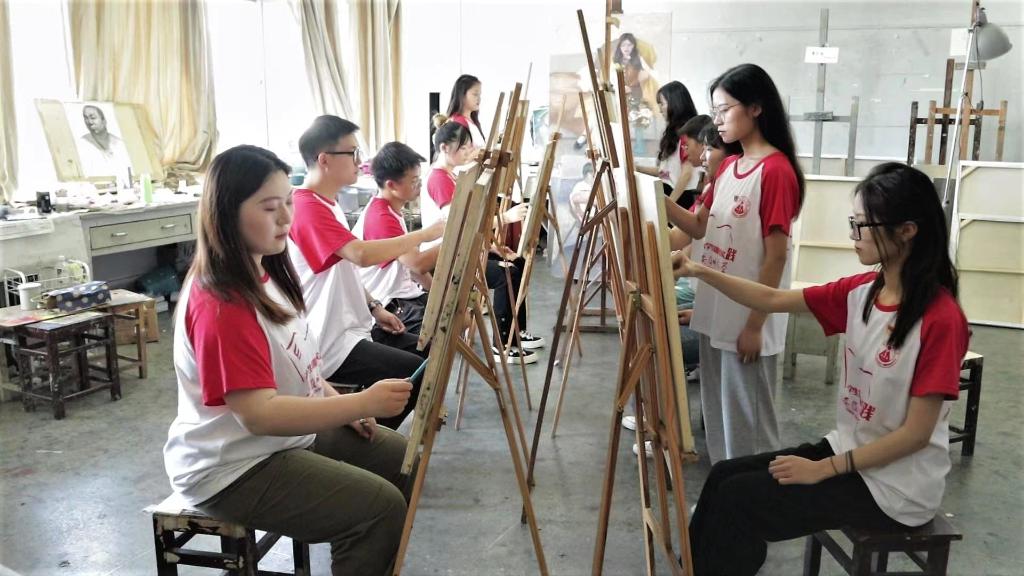 安徽师范大学的大学生志愿者在为烈士画像。(受访者供图)
