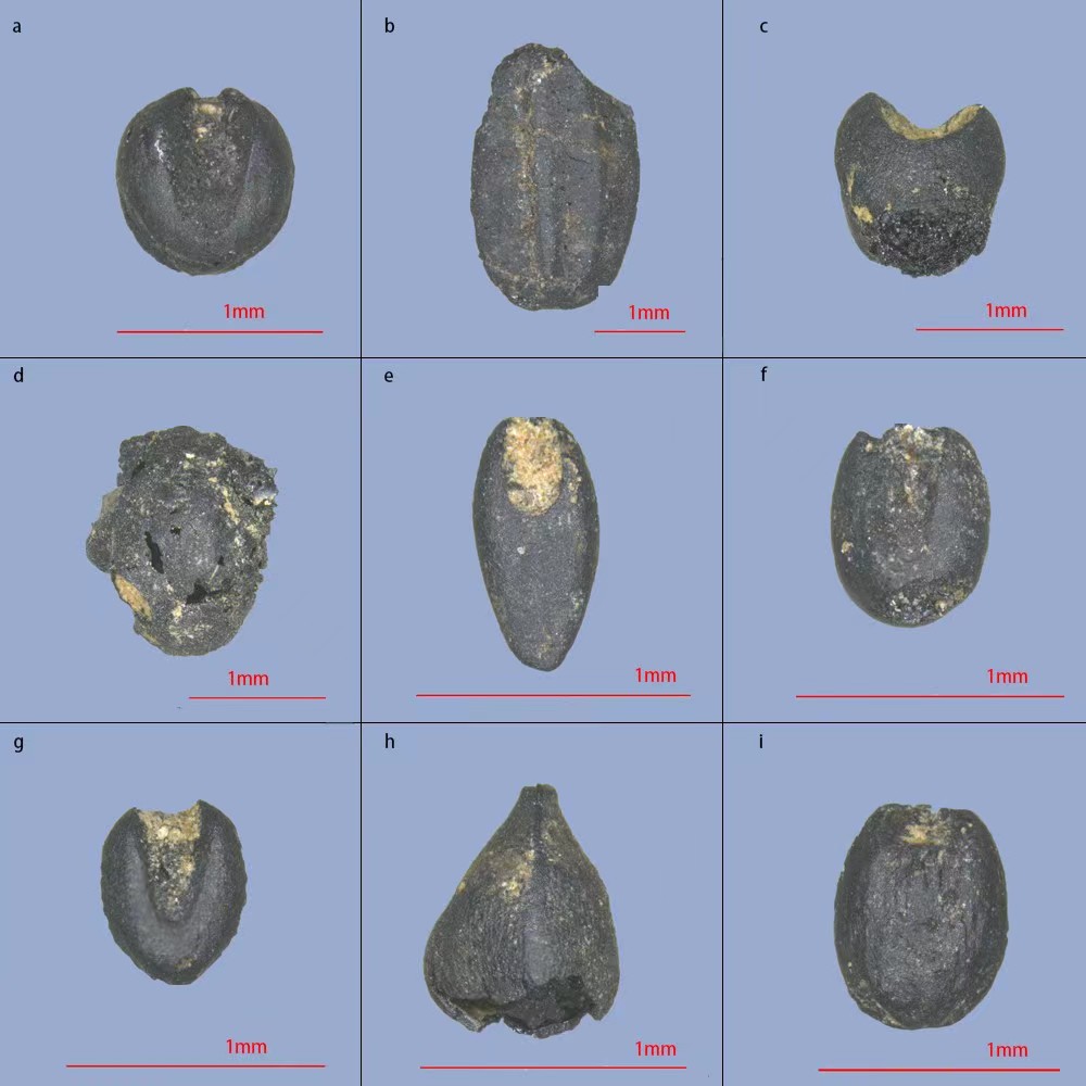 图为黄山遗址出土的部分炭化植物种子