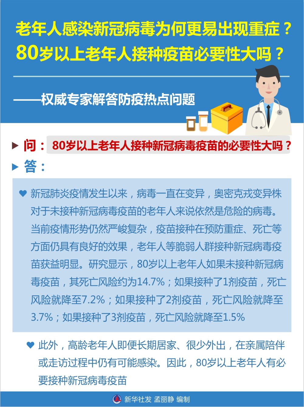新华全媒+丨老年人感染新冠病毒为何更易出现重症?80岁以上老年人接种疫苗必要性大吗?——权威专家解答防疫热点问题