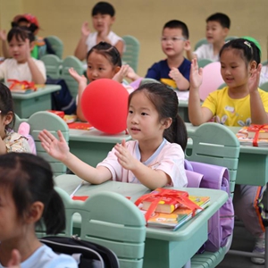 2022年9月1日,河北雄安新区容东片区容和悦容小学一年级新生在上开学第一课。新华社记者 朱旭东 摄