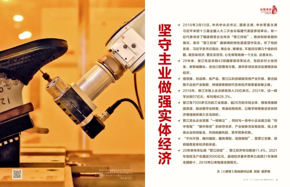 从改革开放之初的家庭作坊起步,晋江人心无旁骛坚守在纺织、鞋服、食品、建材等市场竞争激烈的传统行业,为“一双鞋”“一张纸”“一块面包”赋予越来越多的高质量发展内涵……提质量、创品牌、拓产品,晋江以科技赋能传统产业升级,聚合起搬不走的产业集群,持续探索新时代实体经济高质量发展之路。
