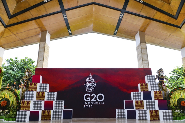 这是11月11日在印度尼西亚巴厘岛拍摄的二十国集团领导人第十七次峰会会场外的标识。新华社记者徐钦摄