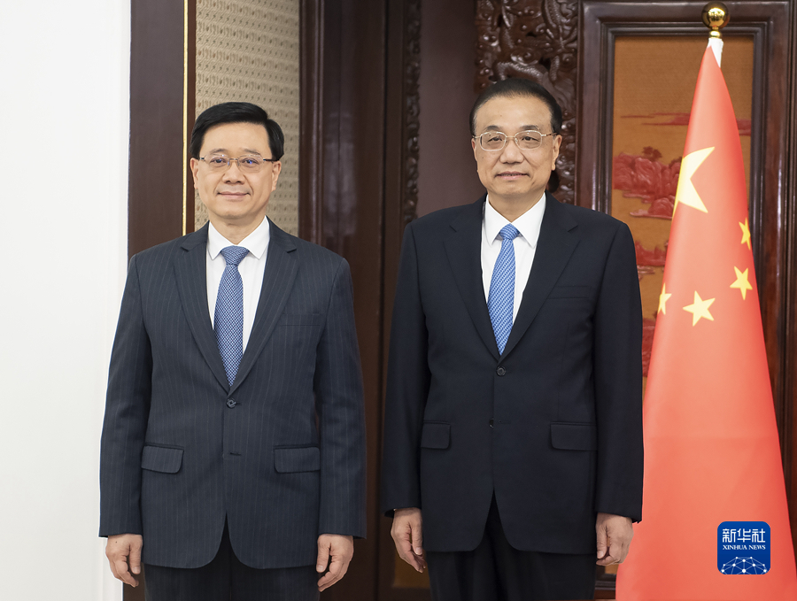 12月22日,国务院总理李克强在中南海紫光阁会见来京述职的香港特别行政区行政长官李家超。新华社记者 李涛 摄
