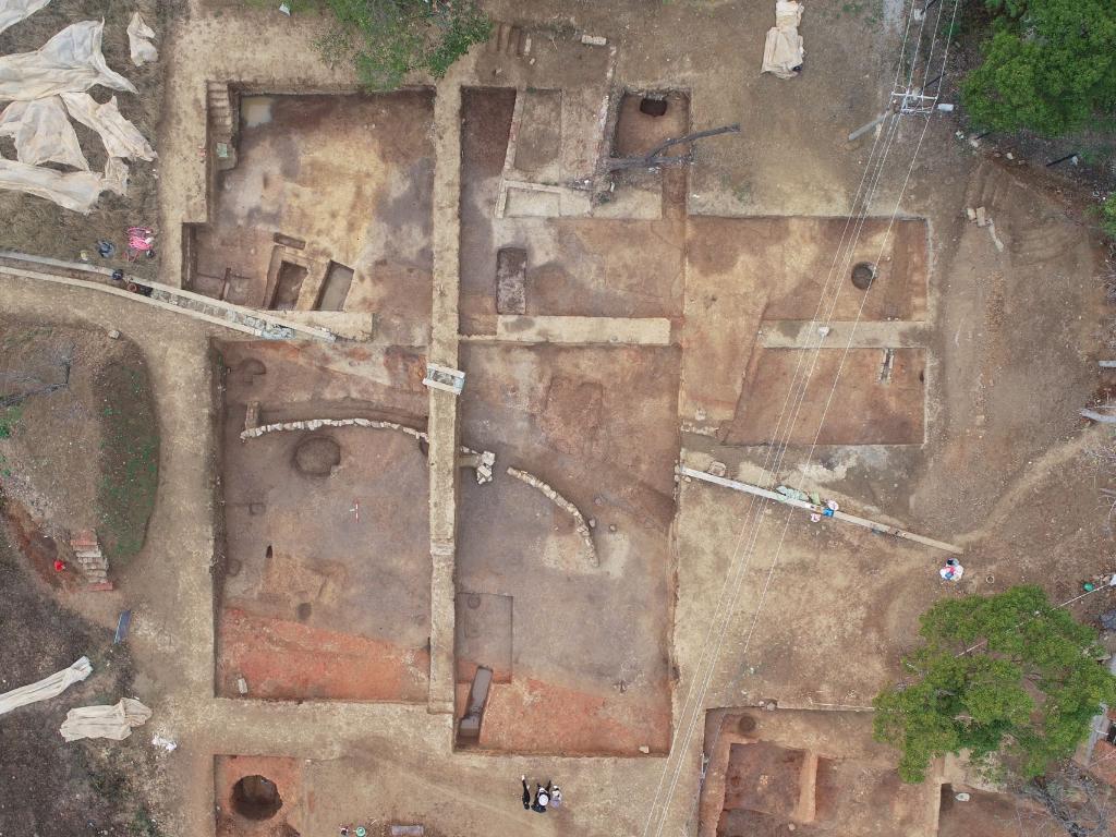 凌家滩遗址红烧土及西侧区域航拍。(安徽省文物考古研究所供图)
