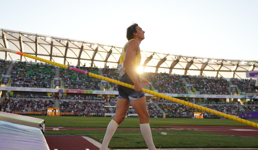 7月24日,杜普兰蒂斯在一次试跳后。新华社记者吴晓凌摄