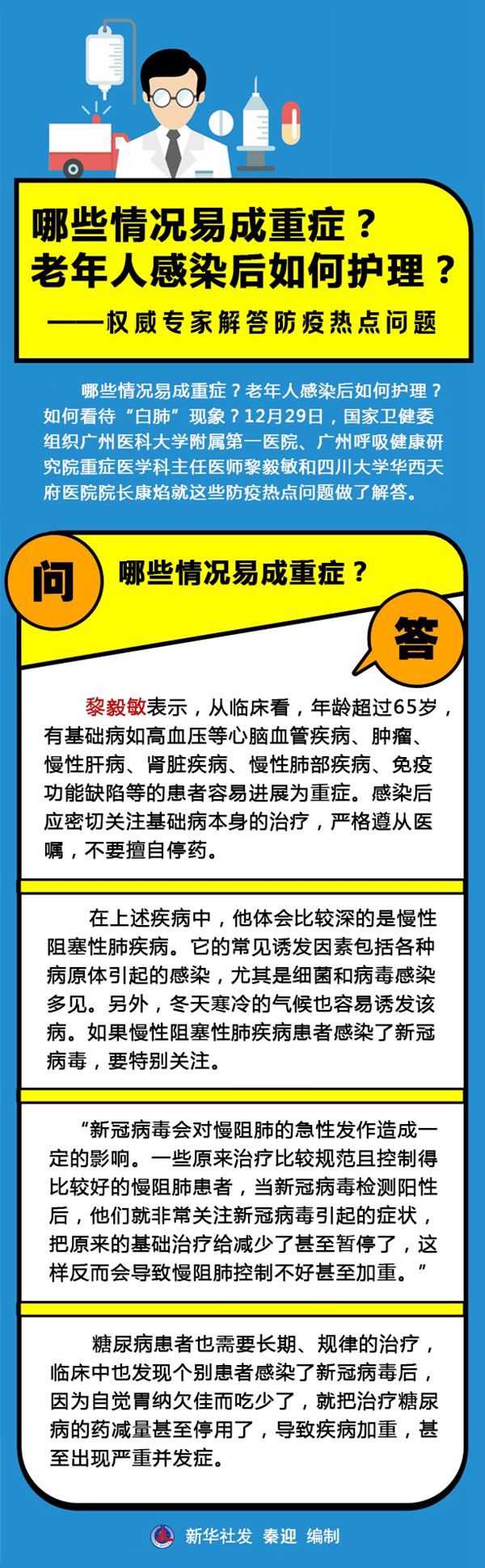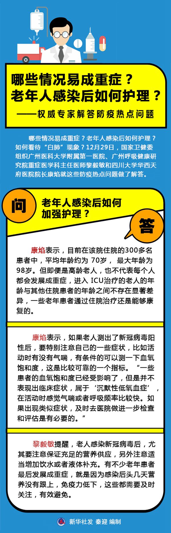 新华社广州12月30日电 题:哪些情况易成重症?老年人感染后如何护理?——国家卫健委组织权威专家解答防疫热点问题