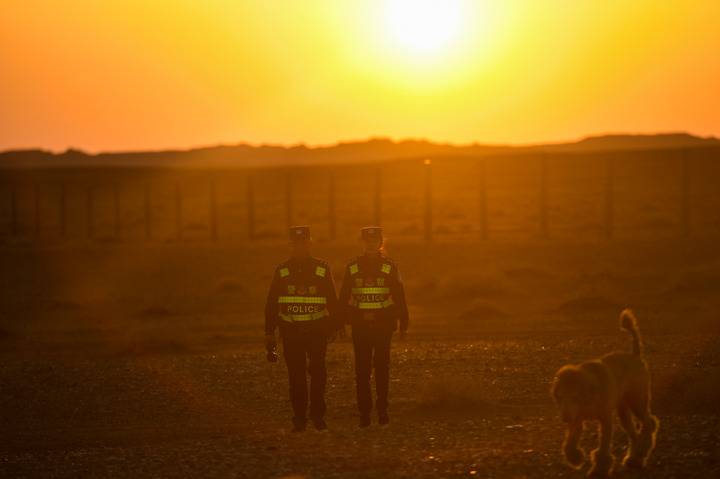 在内蒙古阿拉善盟阿拉善左旗与蒙古国接壤的边境线上,有一对“90后”的夫妻扎根大漠深处,共同守卫着边境线。新华社记者 彭源 摄