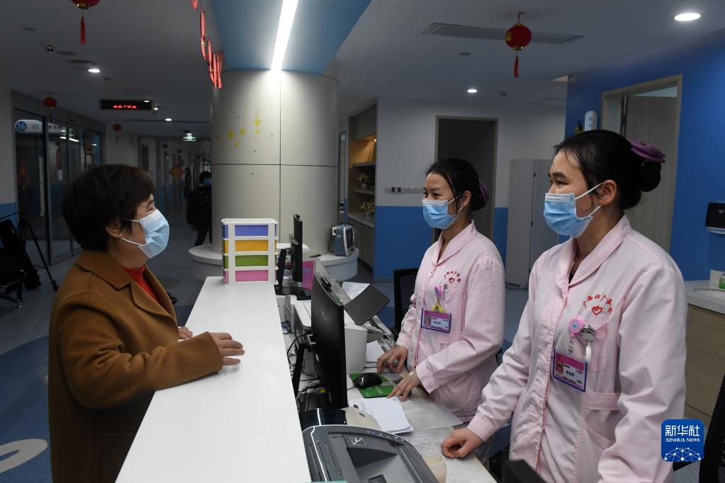 在广西壮族自治区妇幼保健院,杜丽群(左)与护士交流(2月16日摄)。