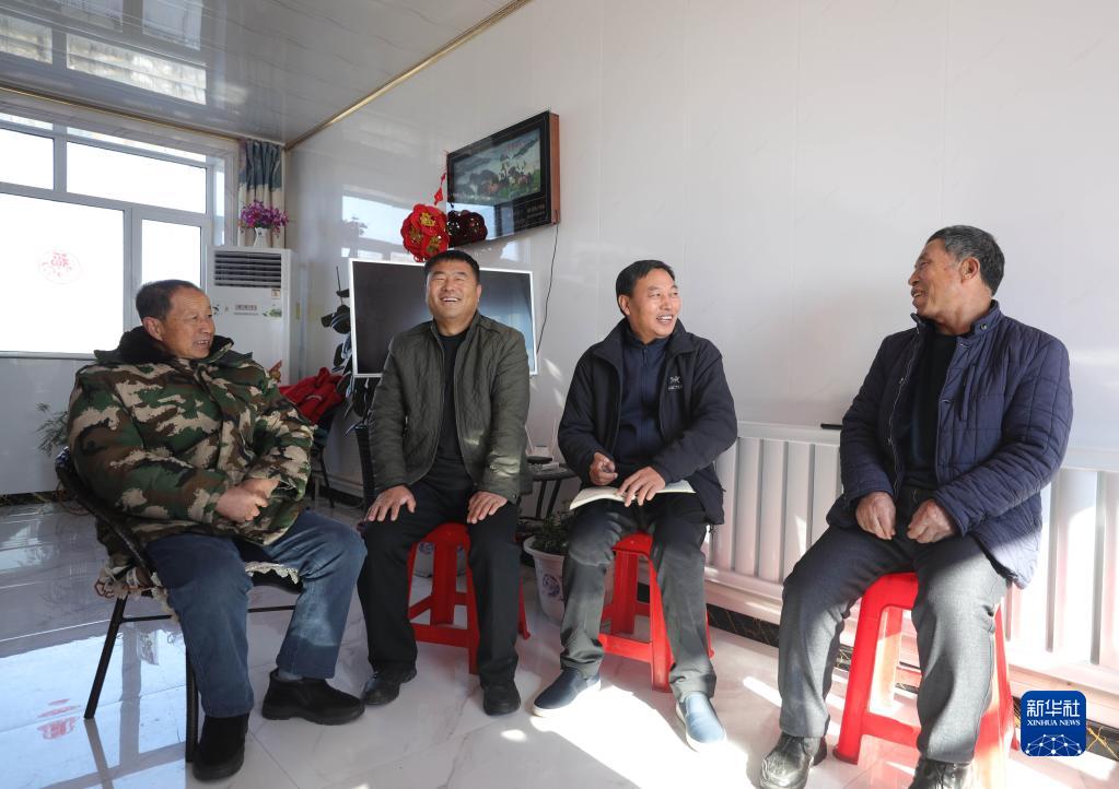 2月15日,郭凯(右二)在盘山县太平街道办事处张家村向村民征求土地保护和节约粮食的意见。