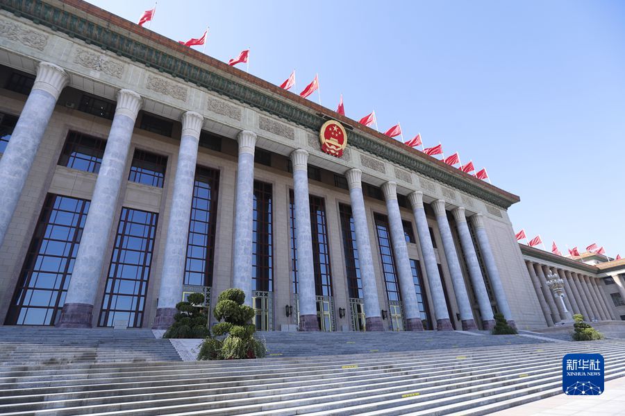 3月3日,全国政协十三届五次会议召开新闻发布会。大会新闻发言人郭卫民向中外媒体介绍本次大会有关情况并回答记者提问。图为人民大会堂外景。新华网 焦鹏 摄
