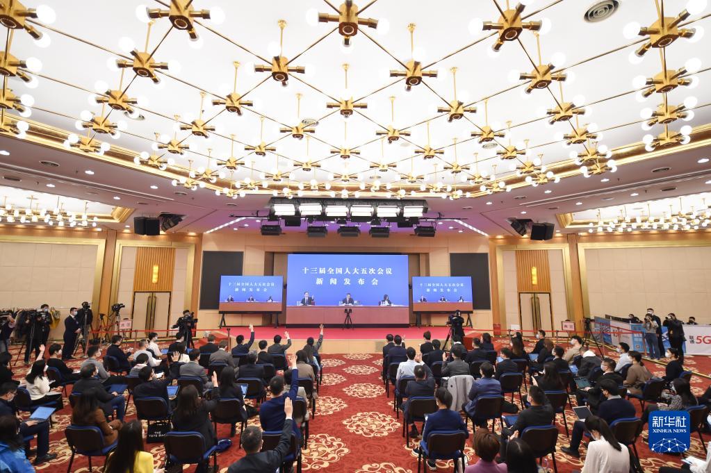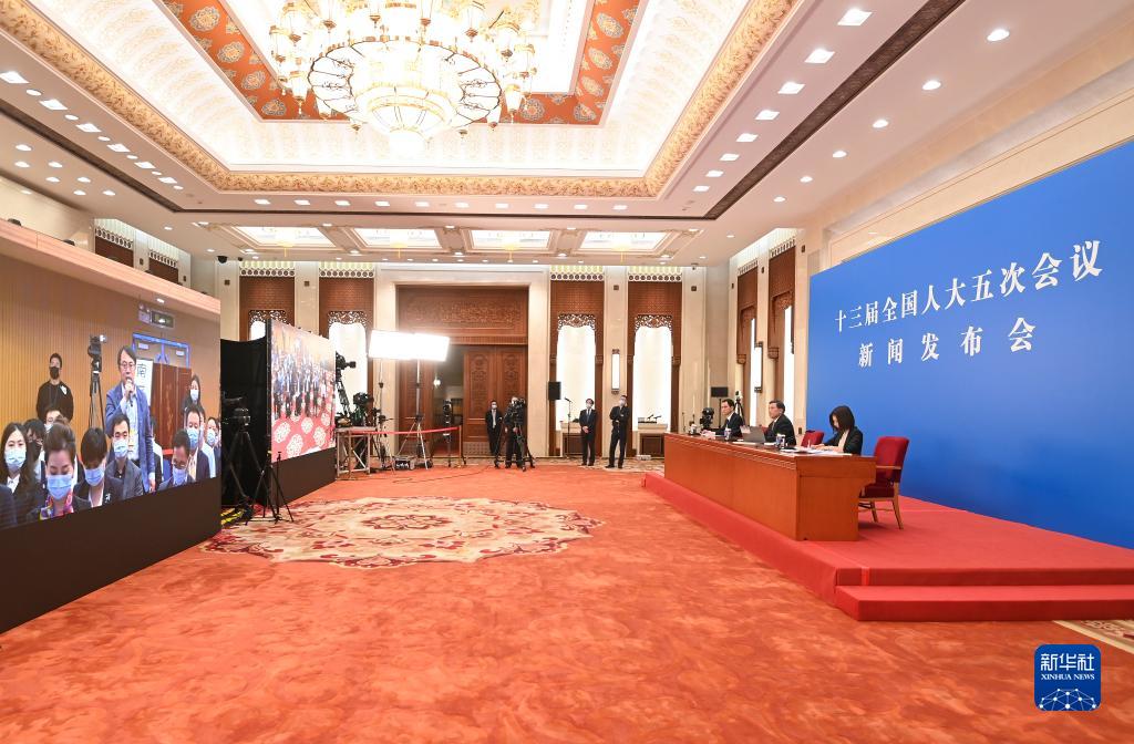 3月4日,十三届全国人大五次会议新闻发布会在北京人民大会堂新闻发布厅举行,大会发言人张业遂就会议议程和人大有关工作回答中外记者提问。这是设在梅地亚中心的分会场。新华社记者 陈钟昊 摄