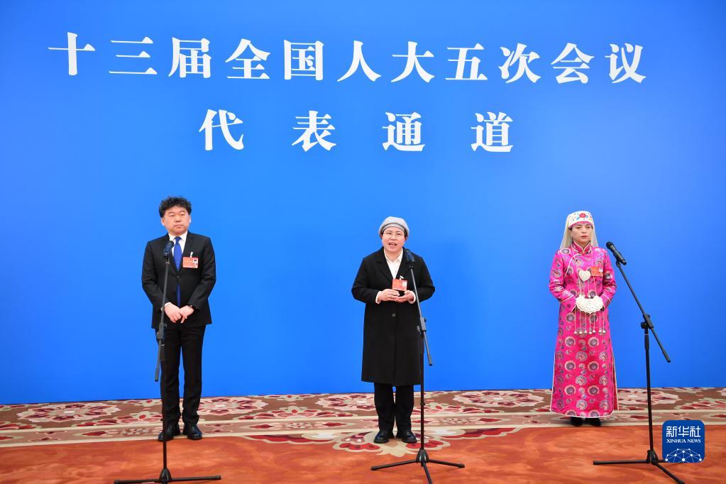 3月5日,第十三届全国人民代表大会第五次会议举行首场“代表通道”采访活动。这是全国人大代表通过网络视频方式接受采访。