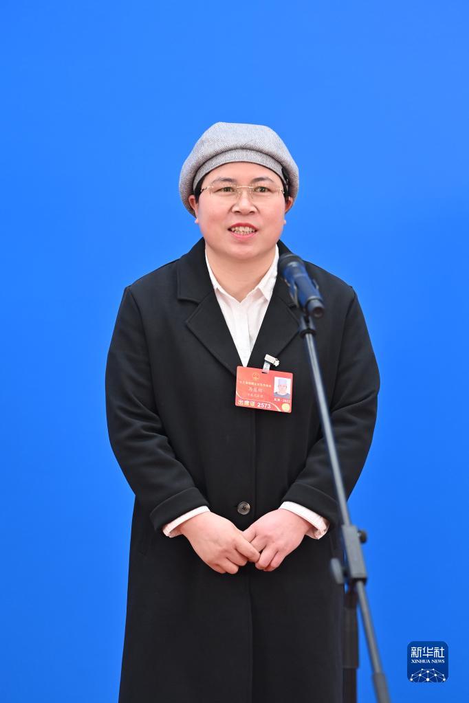 3月5日,第十三届全国人民代表大会第五次会议举行首场“代表通道”采访活动。这是全国人大代表马慧娟通过网络视频方式接受采访。