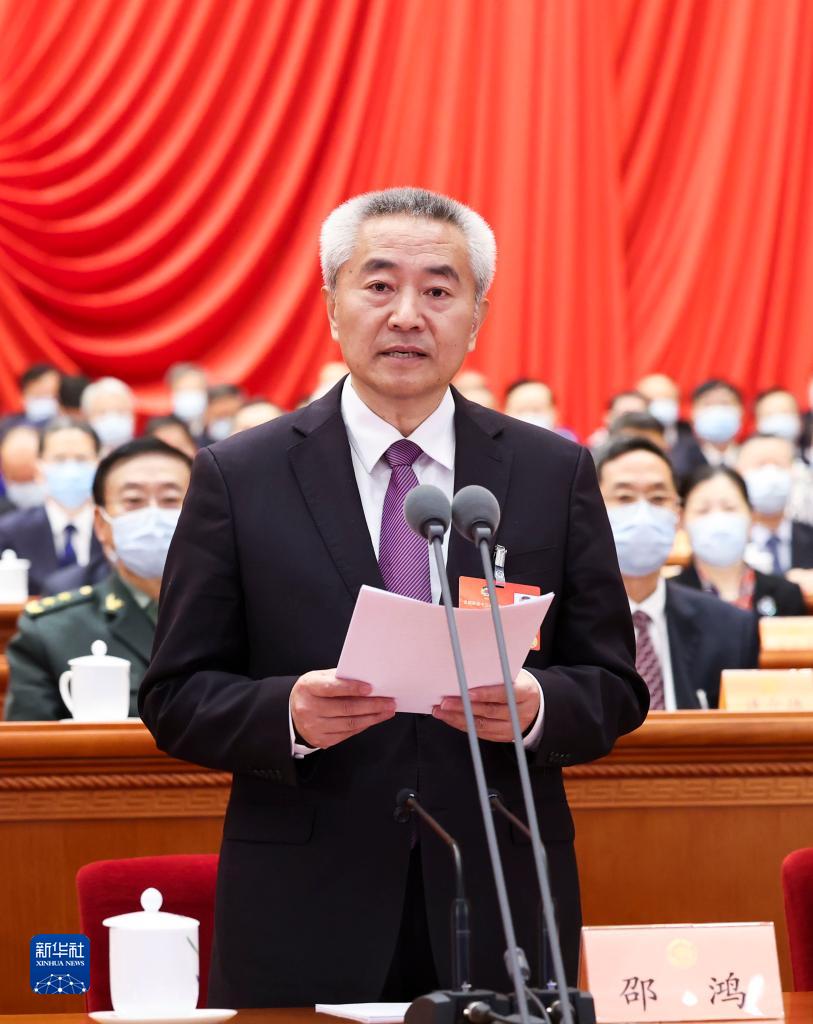 3月7日,全国政协十三届五次会议在北京人民大会堂举行第二次全体会议。全国政协副主席邵鸿主持会议。新华社记者 黄敬文 摄