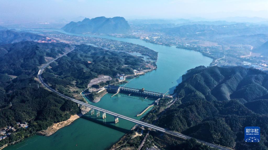这是广西柳州市融安县浮石水电站景色(2021年12月4日摄,无人机照片)。