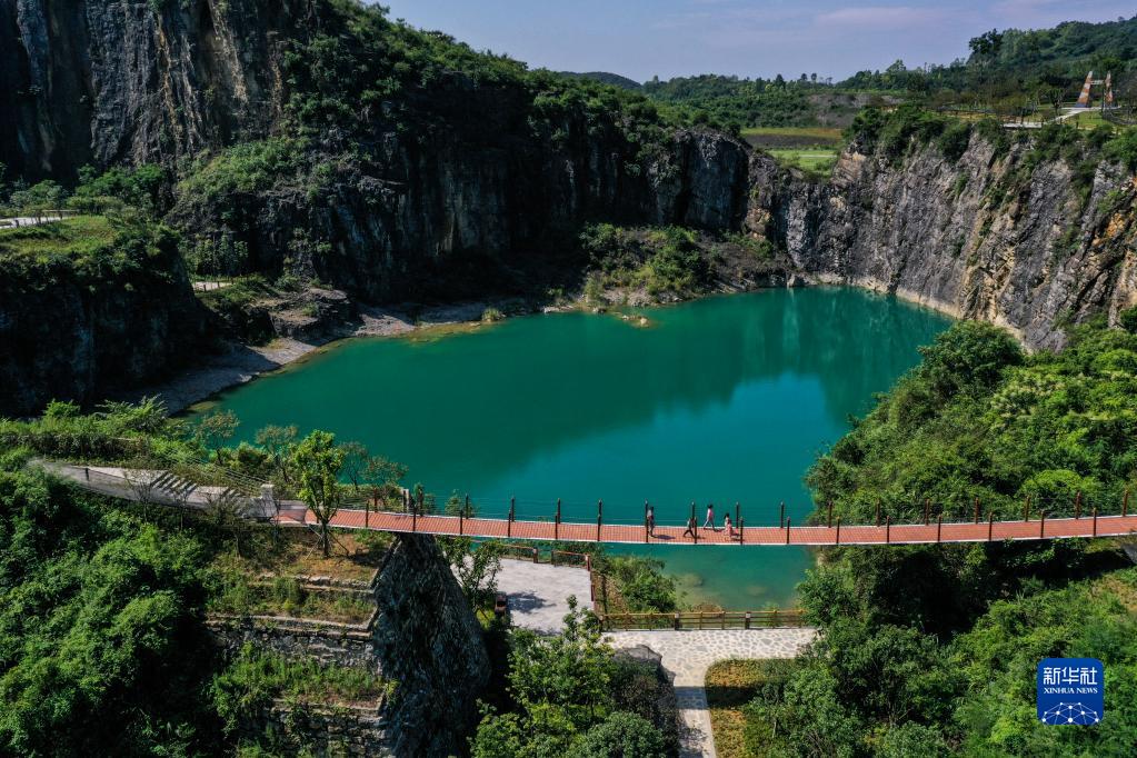 游客在重庆铜锣山矿山公园游览(2021年8月17日摄,无人机照片)。