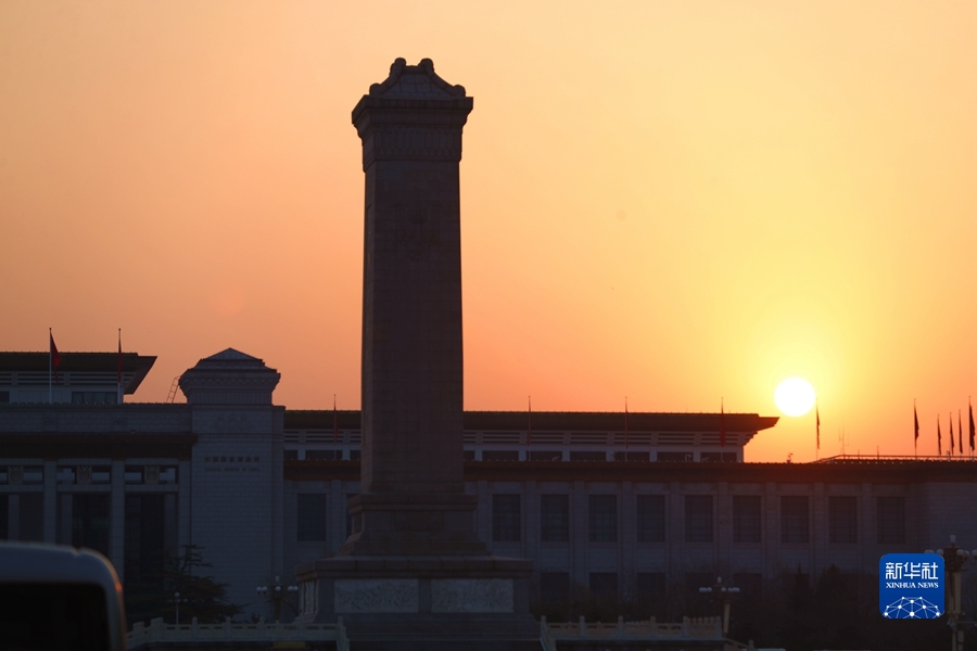 3月8日上午9时,十三届全国人大五次会议在人民大会堂举行第二次全体会议。图为日出即景。 新华网 焦鹏 摄
