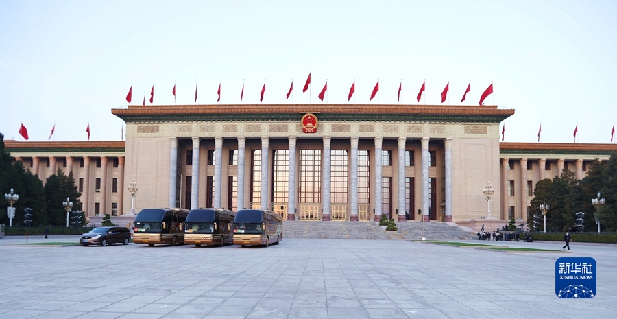 3月8日上午9时,十三届全国人大五次会议在人民大会堂举行第二次全体会议。图为晨曦中的人民大会堂。 新华网 焦鹏 摄