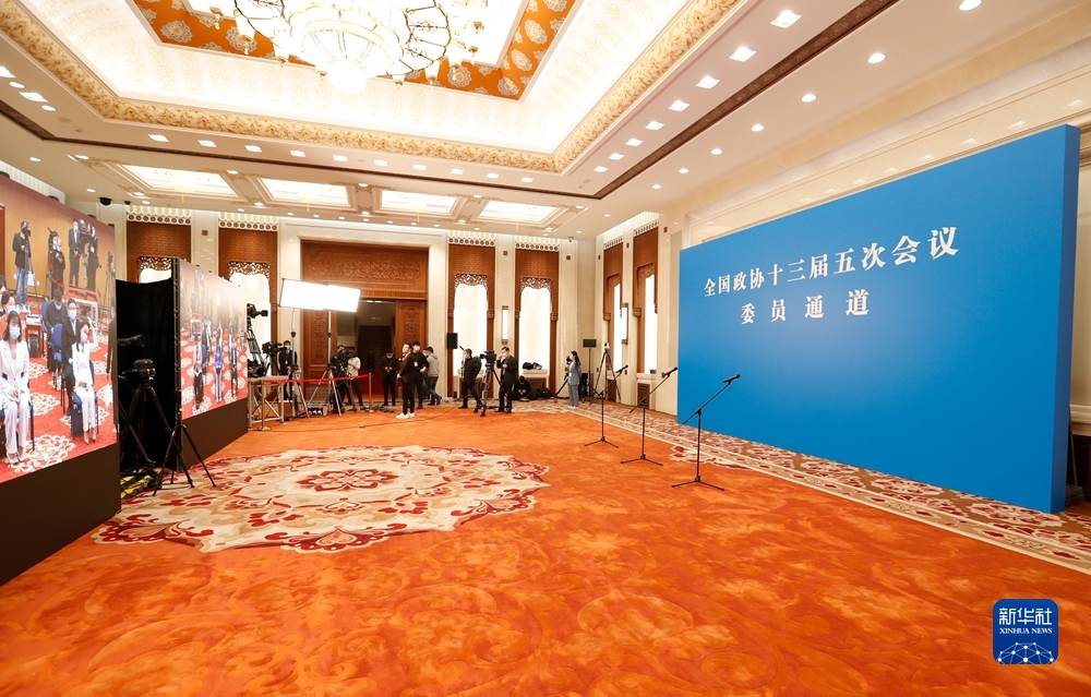 3月10日上午,全国政协十三届五次会议在人民大会堂举行闭幕会。图为会前的“委员通道”集体采访活动。新华网 焦鹏 摄