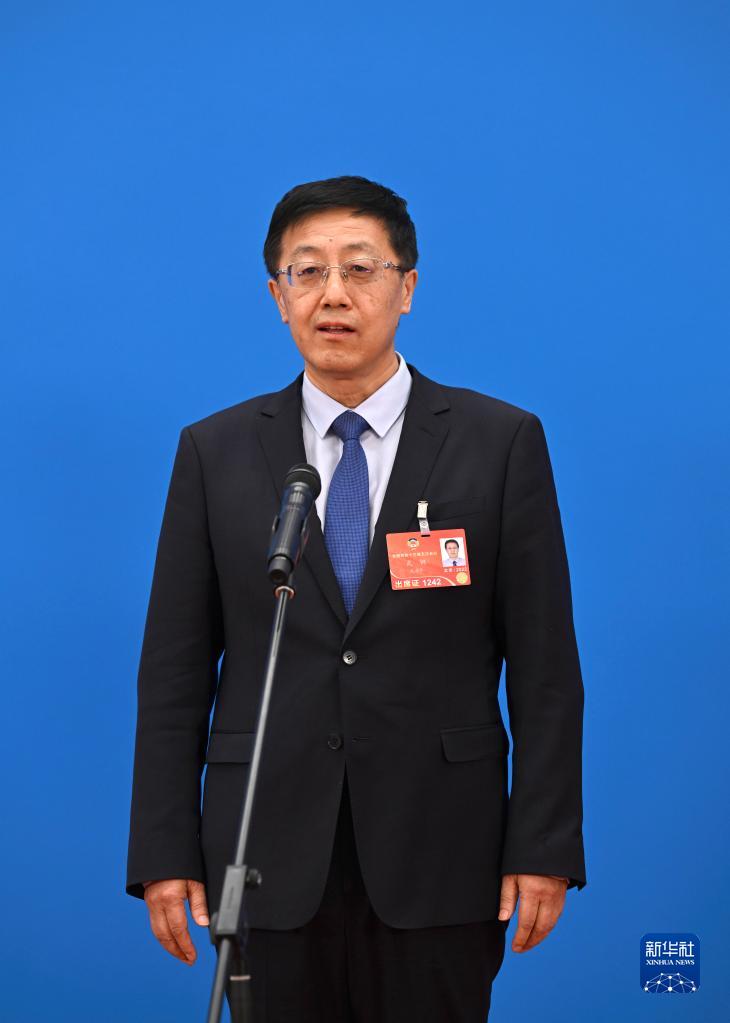 3月10日,全国政协十三届五次会议第三场“委员通道”采访活动在北京人民大会堂新闻发布厅举行。这是全国政协委员武钢通过网络视频方式接受媒体采访。