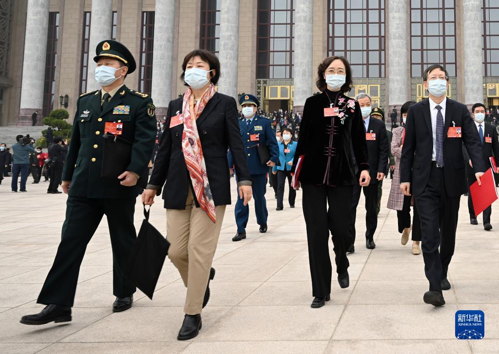 3月11日,第十三届全国人民代表大会第五次会议在北京人民大会堂举行闭幕会。这是闭幕会后,代表走出人民大会堂。