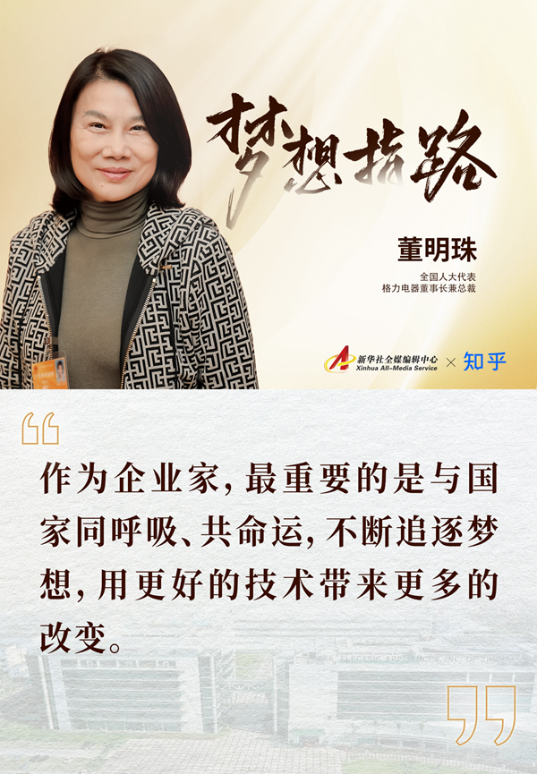“作为人大代表,最重要的责任就是了解民情,把最基层的情况反映上来;作为企业家,最重要的是与国家同呼吸、共命运,不断追逐梦想,用更好的技术带来更多的改变。”董明珠说。