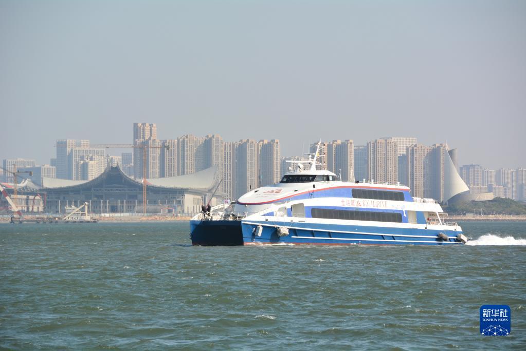 1月7日,“金瑞龙”客轮驶离厦门五通客运码头返回金门。新华社记者 颜之宏 摄