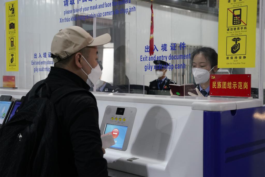 1月8日,磨憨边检站民警对入境人员进行查验。