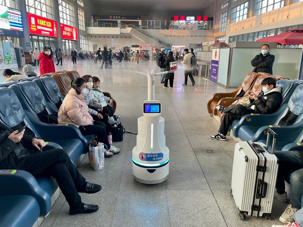 “智能机器人对车站人员密集、流动性大的候车室等公共区域的消杀起到了关键作用,得到了旅客好评。”国铁济南局枣庄站副站长高翔说。