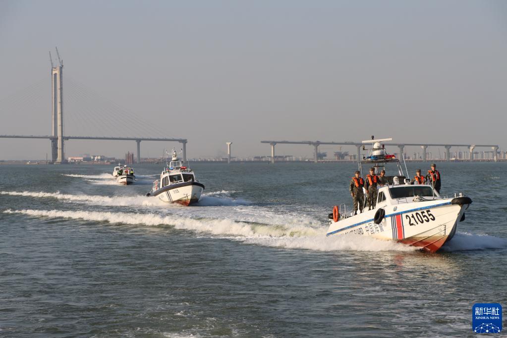 广东海警局联合海上执法相关部门对重点海域开展专项清查,海上编队进行巡逻(2022年10月11日摄)。新华社发(江子波 摄)