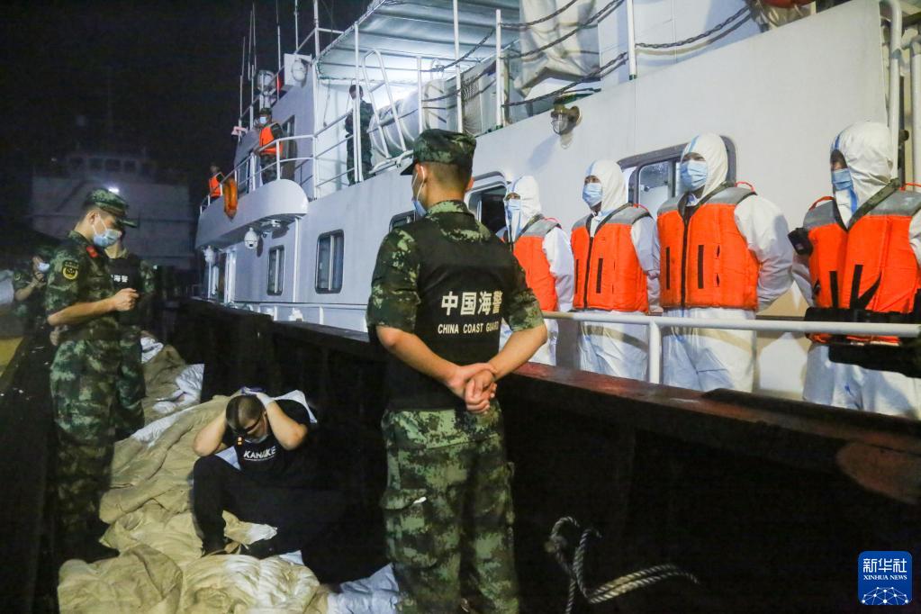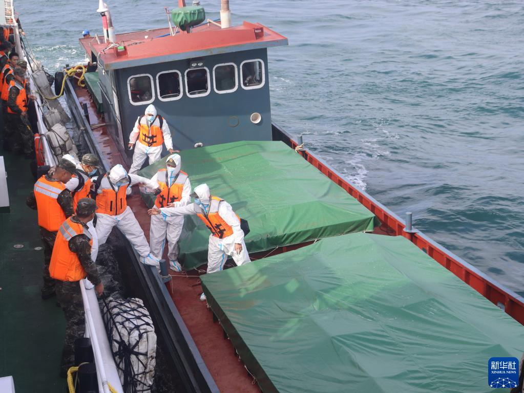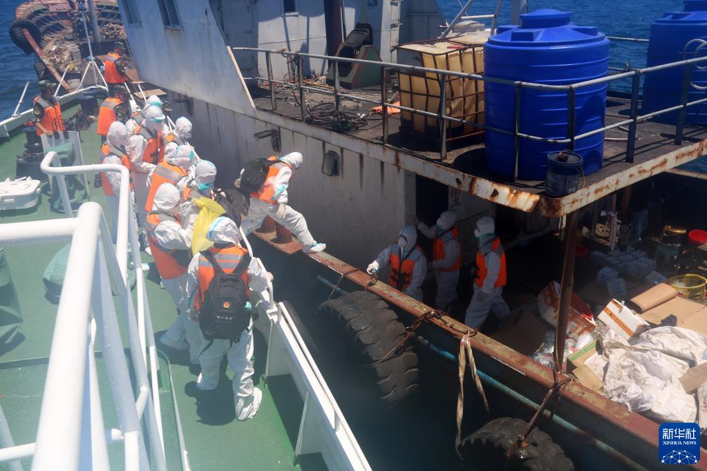 山东海警局执法员查扣一艘涉嫌走私船只(2022年7月14日摄)。新华社发(卢煜萱 摄)