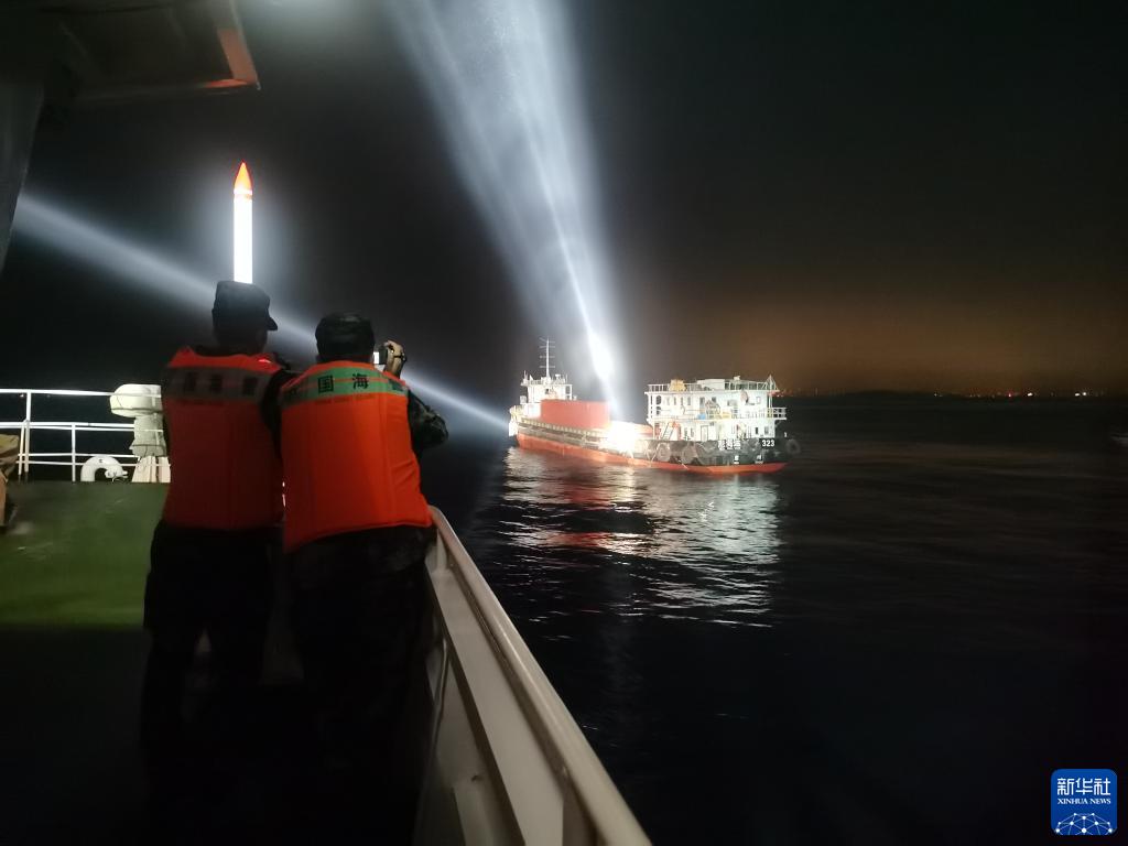 广东海警局对重点海域开展专项清查,执法员对涉嫌船只进行侦查(2022年3月11日摄)。新华社发(江子波 摄)