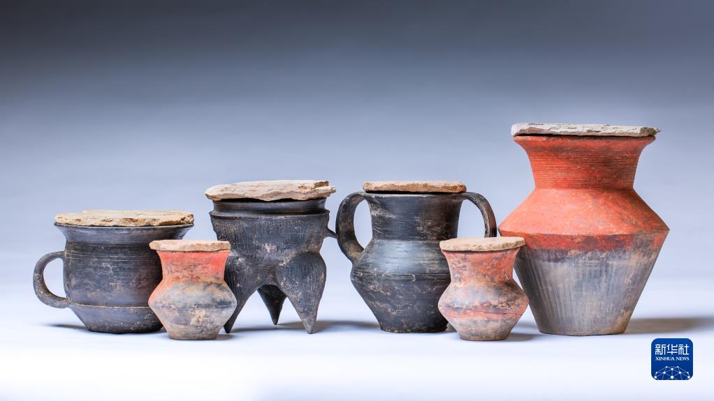 石峁遗址皇城台高等级墓地中出土的陶器(资料图片)。新华社发(陕西省考古研究院供图)