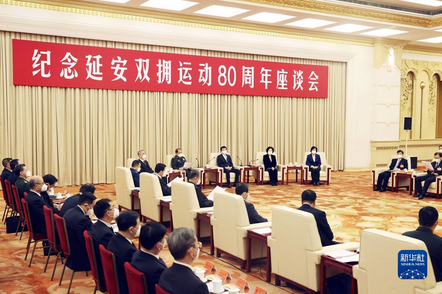 1月12日,纪念延安双拥运动80周年座谈会在北京人民大会堂举行。中共中央政治局常委王沪宁出席座谈会。新华社记者 刘卫兵 摄