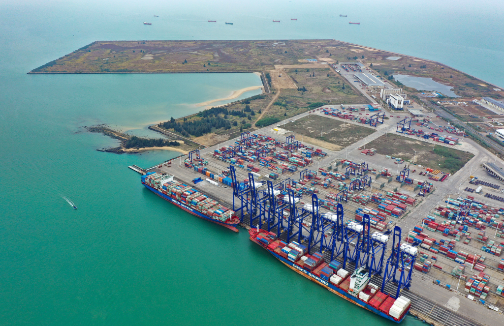 1月11日,海南洋浦区域国际集装箱枢纽港扩建工程开工。该工程是服务打造西部陆海新通道的一项重要工程,项目计划投资超过100亿元,将新建4个20万吨级、1个15万吨级集装箱泊位。建成投产后,预计新增集装箱吞吐能力550万标准箱。新华社记者 郭程 摄