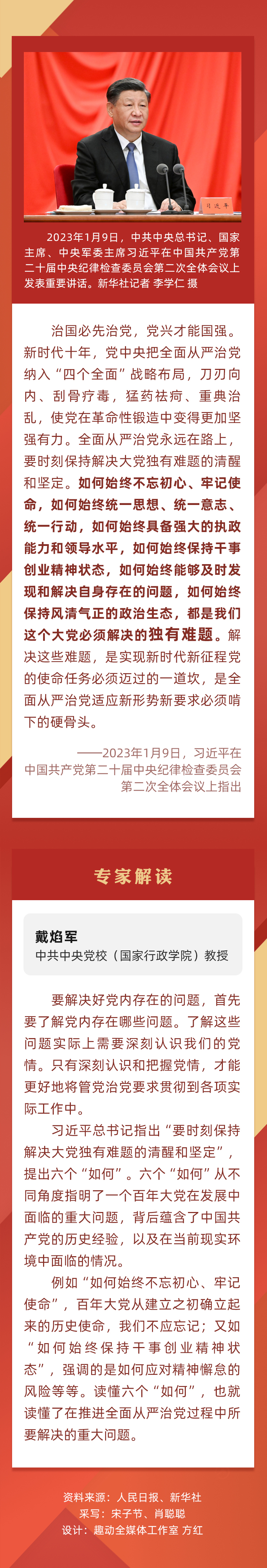 1月9日,中共中央总书记、国家主席、中央军委主席习近平在中国共产党第二十届中央纪律检查委员会第二次全体会议上发表重要讲话。在讲话中,习近平指出“要时刻保持解决大党独有难题的清醒和坚定”。人民网带您重温讲话要点并邀请专家进行解读。