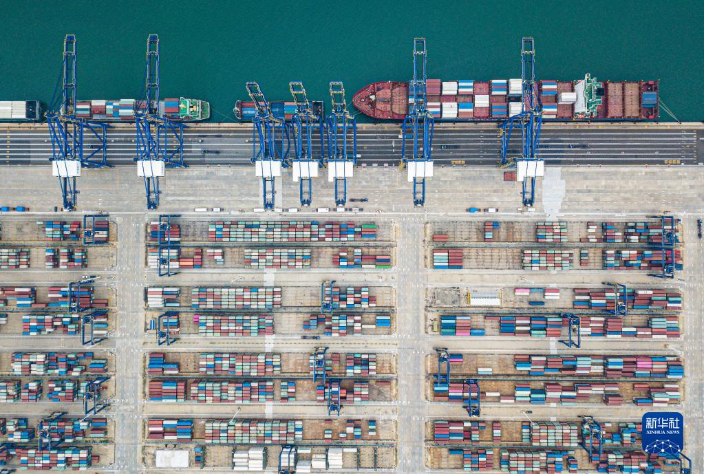 海南洋浦国际集装箱码头一景(2022年11月5日摄,无人机照片)。新华社记者 蒲晓旭 摄