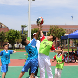 2022年5月下旬,北京师范大学海口附属学校小学部学生参加学校“木铎杯”篮球比赛。(受访者供图)