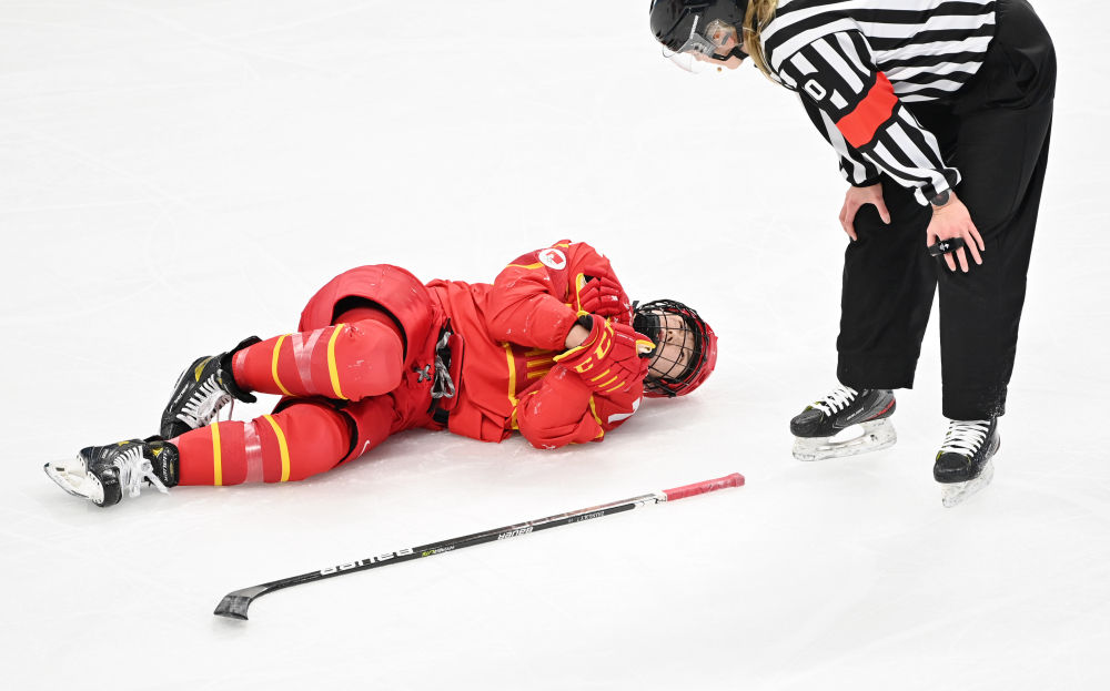 2022年2月6日,中国队球员张梦莹在比赛中受伤倒地。