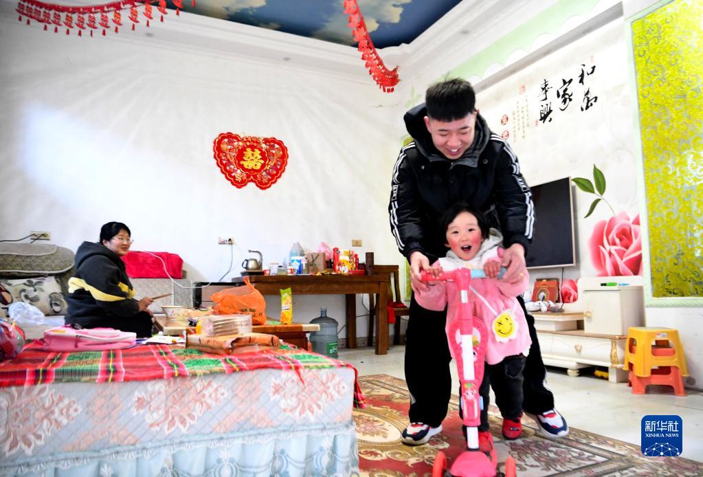 1月19日,靳亚克在陪女儿靳佳颖玩耍。