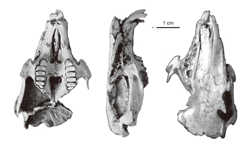 矮脚丝绸兔头骨化石。(中科院古脊椎动物与古人类研究所张兆群供图)