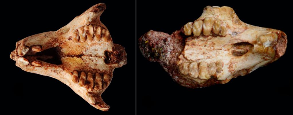 安徽模鼠兔头骨(左)与东方晓鼠头骨前部的齿列(右)。(中科院古脊椎动物与古人类研究所张兆群供图)