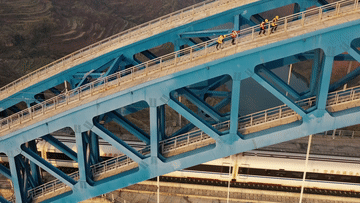 春运期间,贵阳高铁工务段黔西检查工区职工坚守岗位,穿行于日月之间,巡查在大桥之上。