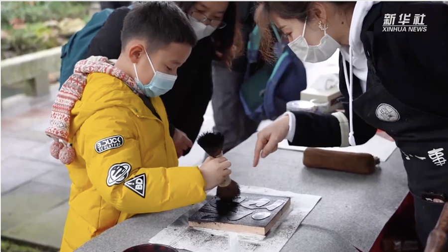 位于浙江省宁波市的天一阁是我国现存历史最悠久的私家藏书楼,建于明嘉靖年间。以天一阁为核心构建的天一阁博物院是当地弘扬国学文化、传承非遗技艺的重要阵地。兔年新春期间,不少游客来到天一阁博物院,与古籍修复专业工作者、民俗艺人一起,拓印“福”字,体验操作雕版印刷技术,感受糖画、剪纸等新春非遗技艺魅力。