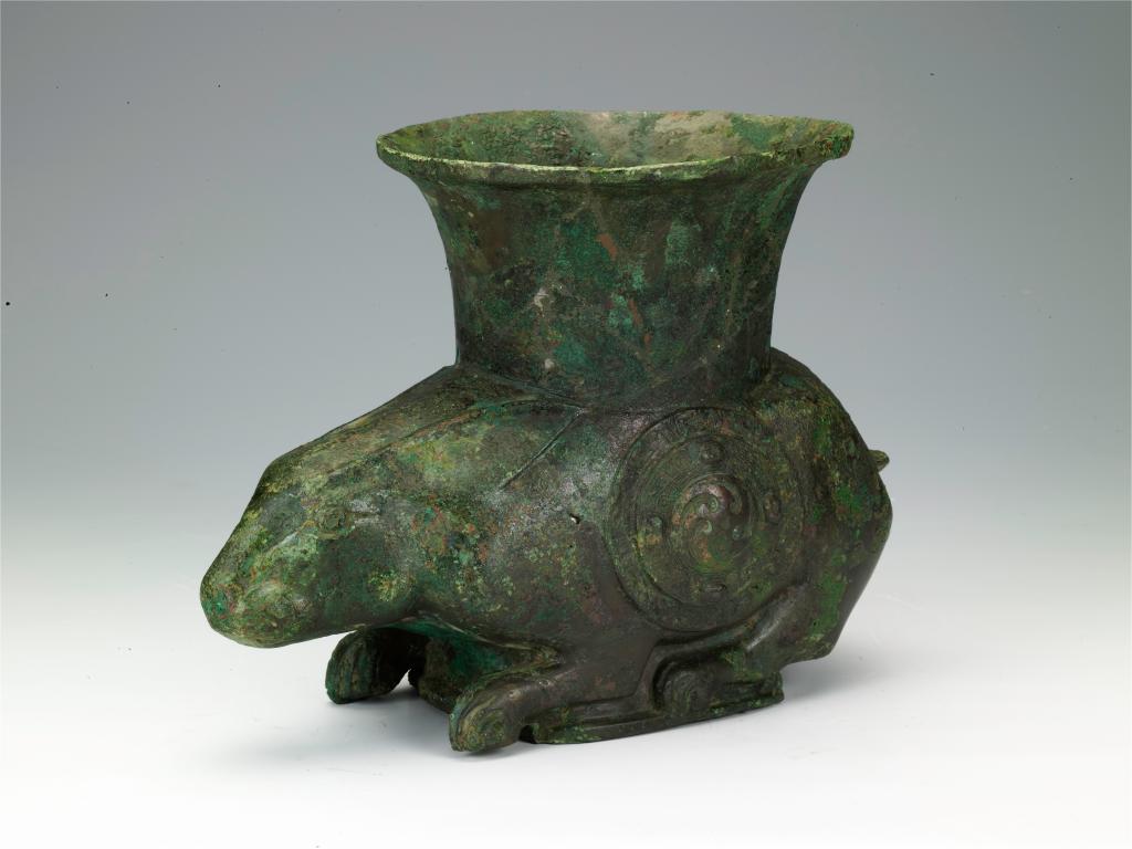 这是晋献侯墓出土的背上立喇叭形口的青铜兔尊。山西省晋国博物馆供图