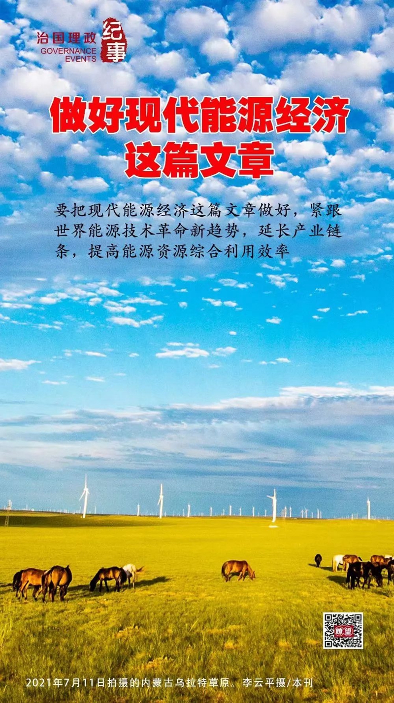 ◆ 牢记习近平总书记的谆谆嘱托,内蒙古紧跟世界能源技术革命新趋势,为现代能源发展插上科技翅膀:延伸能源产业链条,向价值链中高端攀升;不断推进“双碳”工作落实,推动由化石能源大区向清洁能源大区转变,切实担起保障能源安全责任,做好现代能源经济这篇文章。